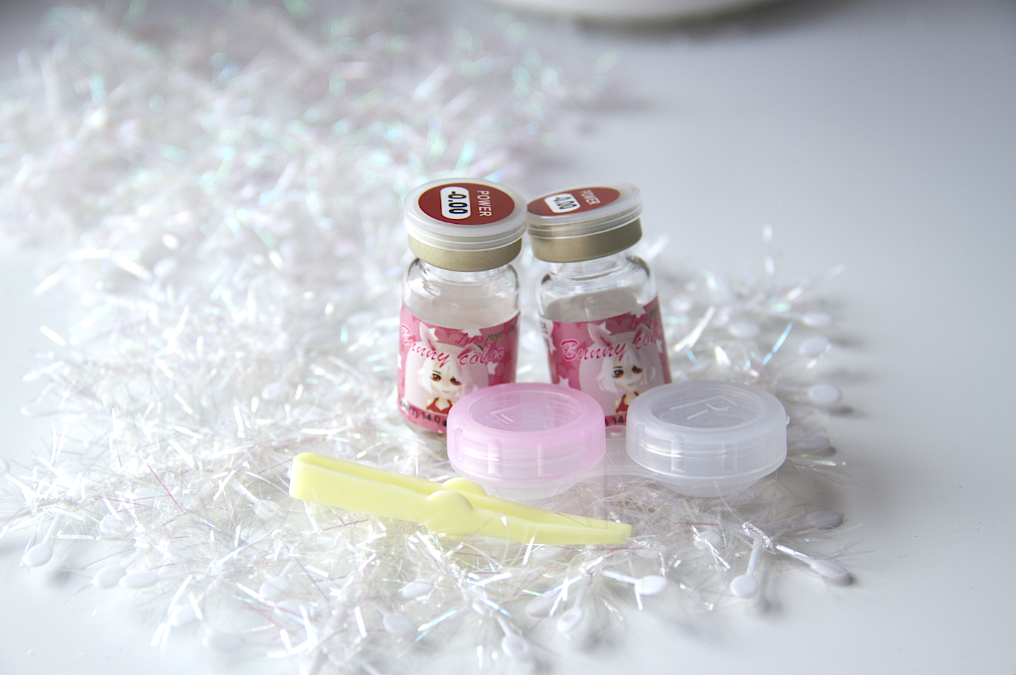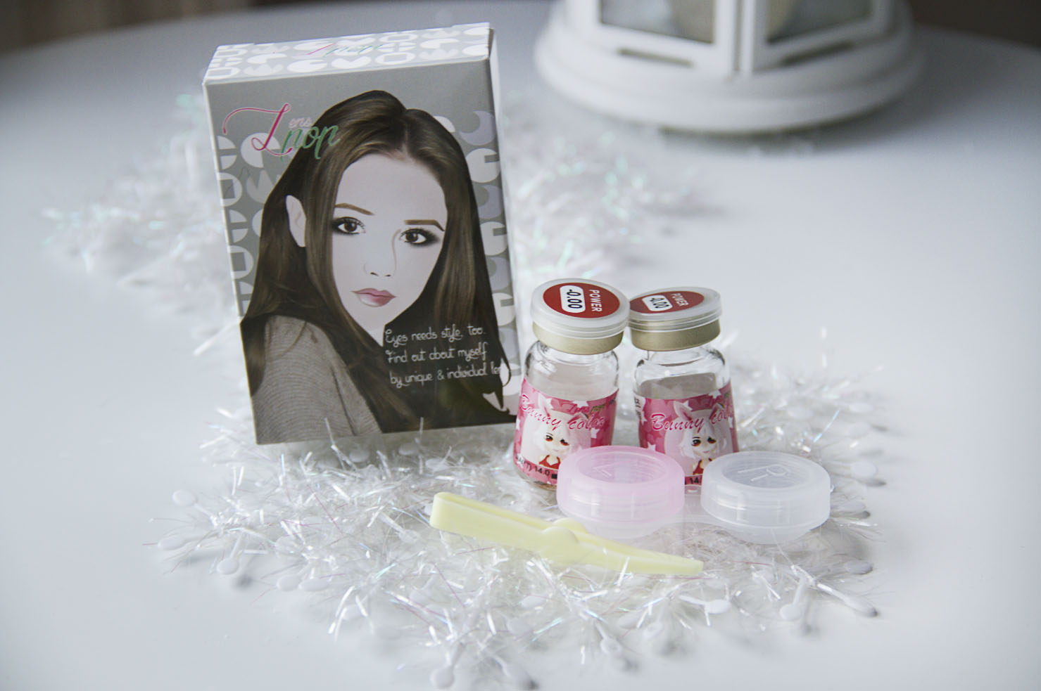 Apart from the lens case and the containers with the lenses, this time there was something new, a pair of plastic tweezers for handling the lenses in the eye without using your bare hands.